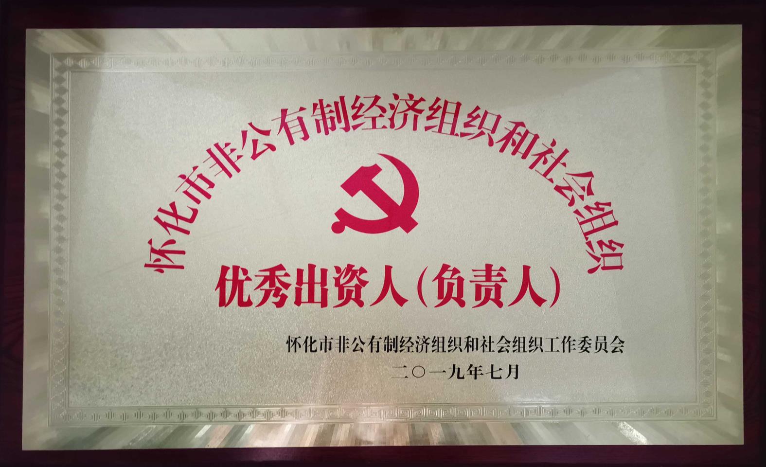 2019年7月被懷化市非公有制經(jīng)濟組織和社會組織工作委員會評為“懷化市非公有制經(jīng)濟組織和社會組織優(yōu)秀出資人(負(fù)責(zé)人)”